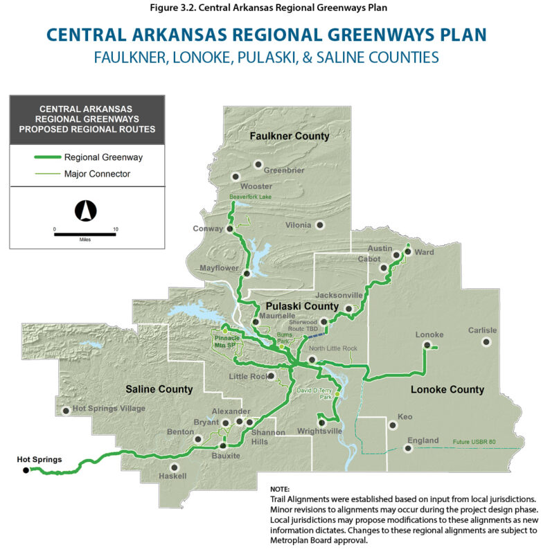 Metroplan is serious about connecting active transportation modes region-wide. In 2023, it adopted a system of Regional Greenways that are: